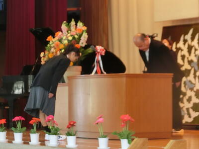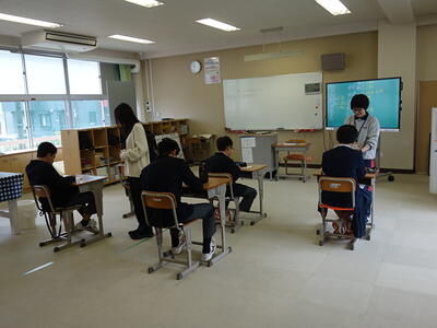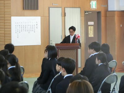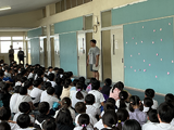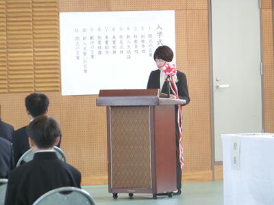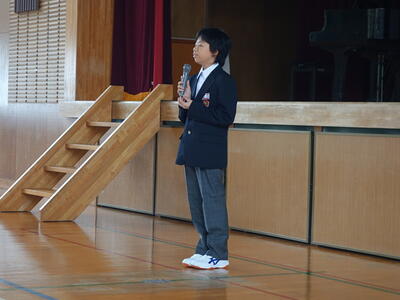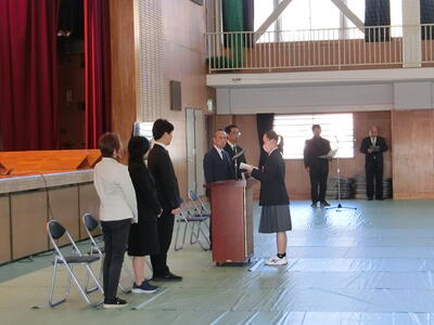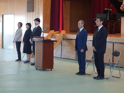 今年度、宇佐美中学校では5人の新たな教職員の方々をお迎えしました。校長先生からの紹介の後、代表生徒が歓迎の言葉を述べました。