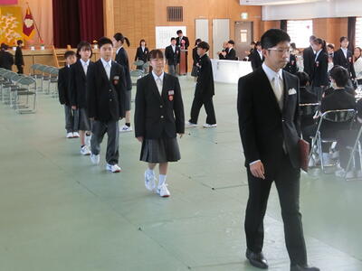 清々しい青空の下、44名の新入生を迎え、節目となる80回目の入学式が行われました。真新しい制服に身を包み、緊張の面持ちながらもしっかりとした足取りで体育館へ入場した新入生。認証の際には、担任の先生からの呼名にはっきり答え、どことなく中学生となった自信と誇りを感じさせてくれる姿が非常に印象的でした。新入生にとっても「宇佐美中でよかった」と思える1年となるよう、我々教職員も一層励んで参ります。